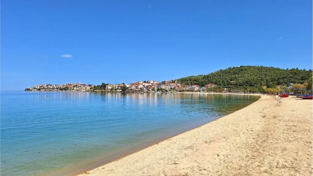 Neos Marmaras is surrounded by several beautiful beaches and small coves.At the entrance of the town lies Paradiso Beach, a peaceful area with crystal-clear water and a relaxed atmosphere. On the opposite side, toward the famous resort of Porto Carras, visitors will find the long City Beach. This large sandy beach stretches along the coastline and is considered one of the most beautiful beaches located directly in a town anywhere in Halkidiki. With shallow water, soft sand, and easy access from the center, it is perfect for families and visitors who want to enjoy the sea without leaving town.
