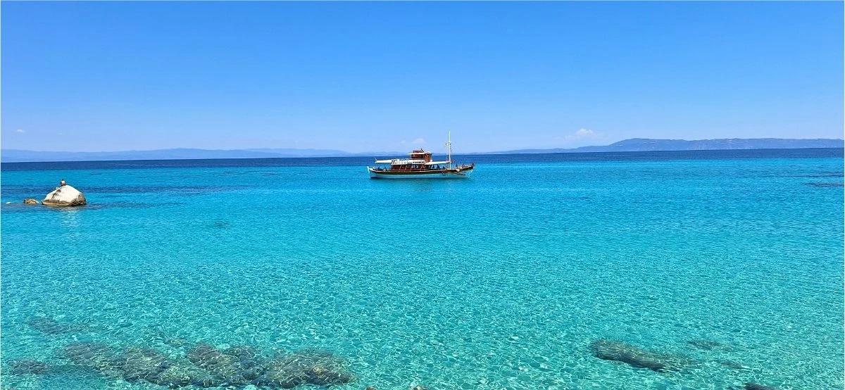 Orange Beach is famous for its white sand, crystal-clear turquoise waters, and serene environment. Guests can sunbathe, swim, or explore small coves along the shore. This is the perfect spot to unwind and enjoy the beauty of Sithonia.